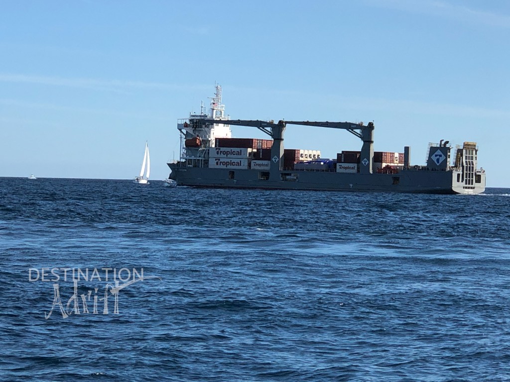 Sadly, winds were only 5-7 knots so we couldn’t put the sails up. After a 30 mile sail, we approached the Lake Worth/Palm Beach inlet, which was quite an interesting inlet. The channel was fairly narrow (to our standards) and it made it feel even smaller with large cargo ships and fancy yachts going in and out.