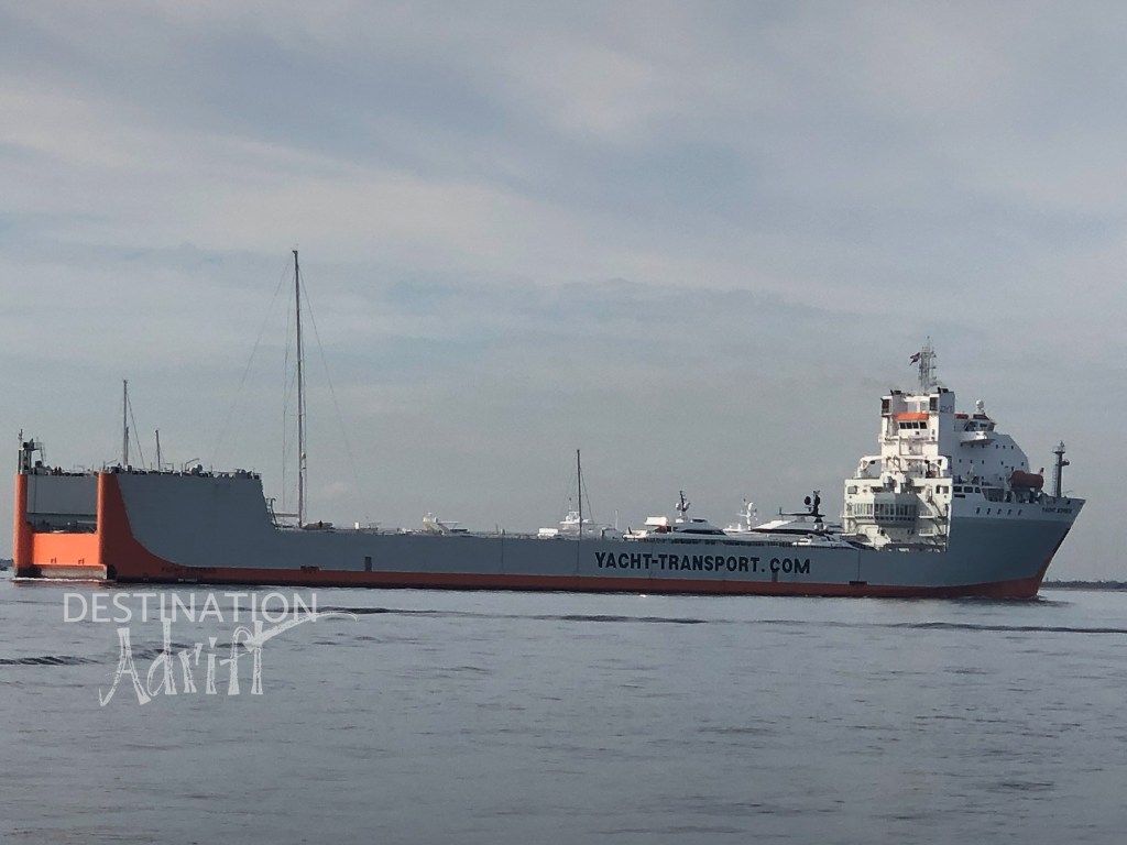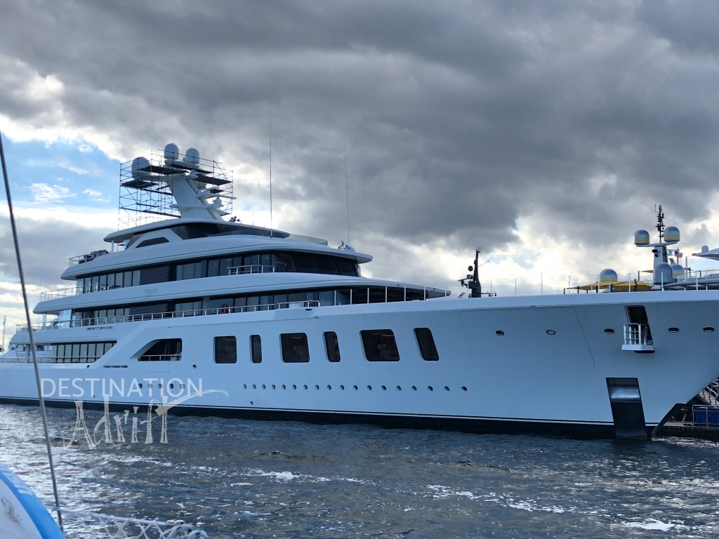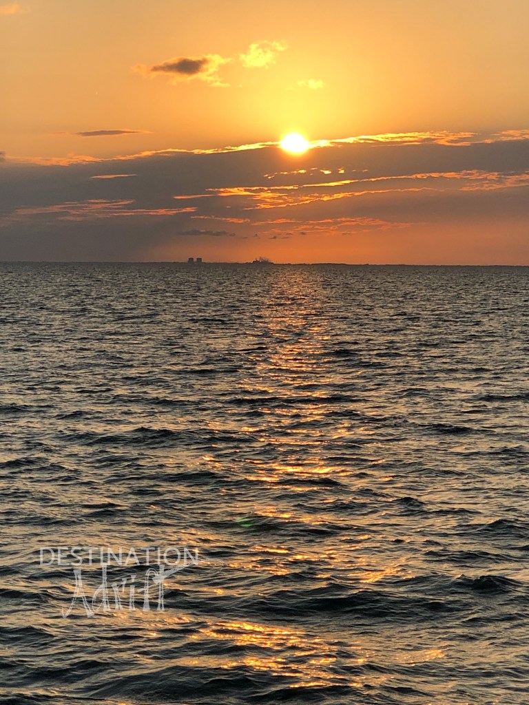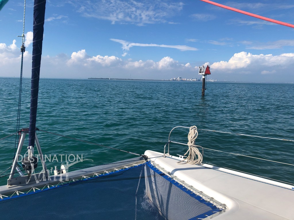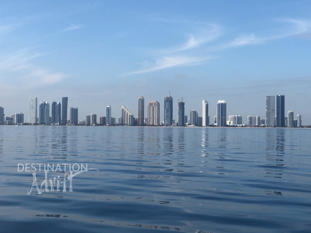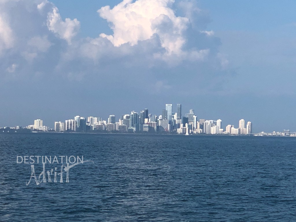 12/15- The third leg of this trip was Boca Raton to Miami and was a longer, 8 hour day. Steve put the fishing lines out…so far we were 0 for 2 with ocean fishing on our own boat. Luckily he did catch one Bontio that day. What wind we did have was on the nose again so still no sailing! We started seeing more and more cargo ships, huge yachts, and even a “sleeping” cruise ship. We actually got to see the new crew come from land to get on. Even though cruise ships aren’t active right now because of COVID, they still need to take care of the ship, and that’s exactly what the crew does. We also spotted an amazing, and the world’s largest “sloop” sailboat called “M5”.
