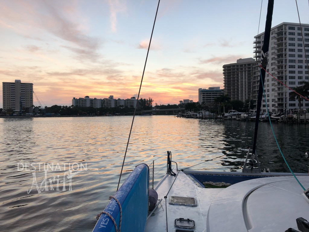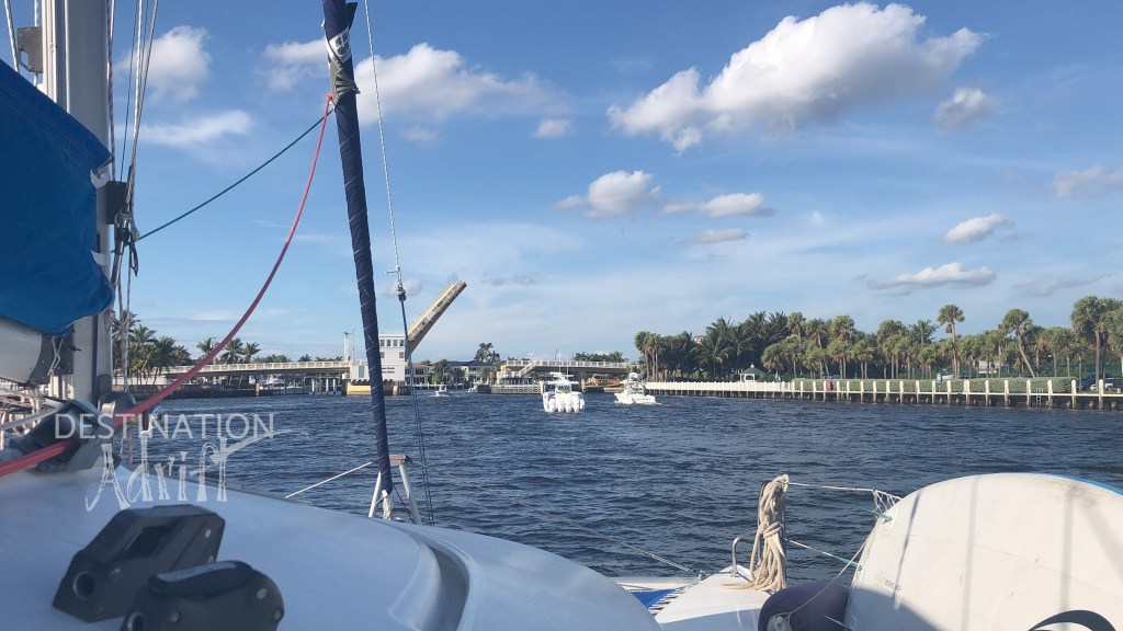Great conditions again (seas 2 feet every 2-3 seconds) and awesome wind at 15 knots…but on the nose so no sails again. Our next stop was Boca Raton and it took us about 7 hours total, anchor to anchor. The tricky thing about the Boca inlet is that it is REALLY narrow, REALLY shallow in places, and also very busy but mostly with small vessels, no cargo ships or huge yachts thank goodness. The other caveat is that it is hard to navigate when there is a strong current. We decided to skip this inlet and head farther south to the Hillsboro Inlet to work our way north in the ICW until we reached Lake Boca Raton.