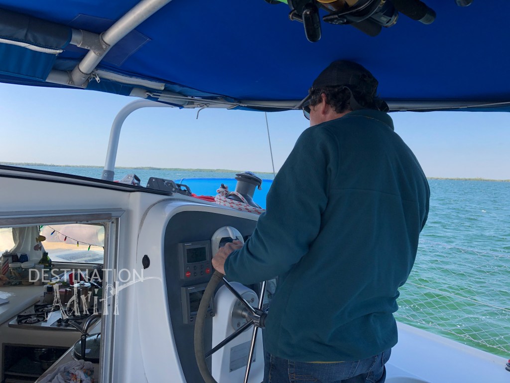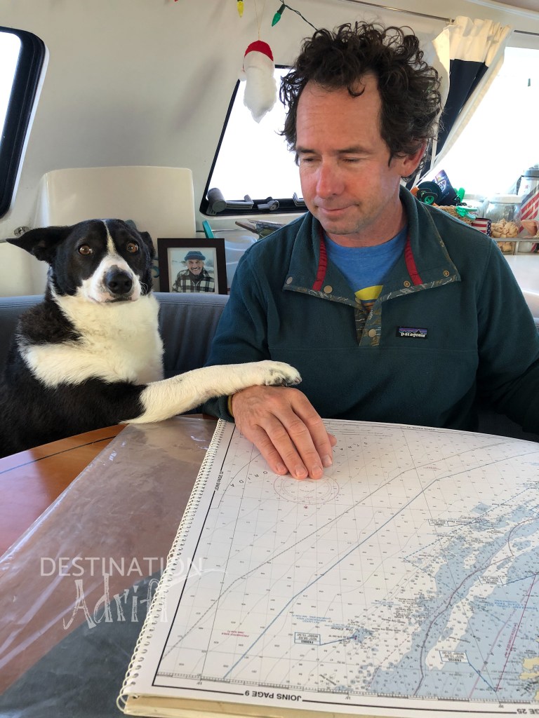 Thur, 12/24 and Fri, 12/25-Christmas Eve was a very fun and eventful day! We wrapped presents, Steve and our buddy Bill went lobster and crab hunting, Bella and I paddled, we enjoyed a nice rain and boat wash, then we had a fun FaceTime session with our families. The forecast was predicting up to 40kt winds so Steve and Bill prepared the boats by adding a 2nd anchor on each. They set the anchors in a “Double Bow” or “V Configuration.” After setting the anchors, and diving to check on them, we cooked our delicious catch of sea food for dinner, set the anchor alarm, and went to bed prepared (or so we thought) for the wrath Mother Nature was about to bestow on us. Again, being set early gave us confidence in the new-to-us system, however…we were not ready for a 180° shift in the wind overnight. At 3am (for some reason…all boat issues start at this time…) we woke up to some distant yelling, and then, our anchor drag alarm went off. We immediately grabbed our glasses, spotlights, and rain coats, and fired the engines up. This would be our first dragging experience. To say it was a challenge is an vast understatement. At first we had to assess where we were, in the pitch black, pouring rain, and 40kt gusting wind. We figured out that we had dragged about 100’ which might not sound like a lot but unfortunately there were some very shallow places near us and sure enough, we noticed that there was less than a foot of space left under our keel. If our anchors kept dragging, we’d run aground for sure. Our buddy’s boat also dragged and they were about a quarter of a mile away, run aground. The yelling we heard? Yep, that was the other catamaran who was ALSO dragging. Steve put me at the helm as he went to try to bring the anchors in. I was tasked with fighting the wind and keeping the boat facing west while we motored towards the anchors all the while trying NOT to drag any farther. For me, fighting the wind while trying to motor forward and stay straight feels like walking the opposite way on a moving walkway at the airport…you have to keep fighting it in order to just stay in one place! While Steve was bringing in the main anchor on the windlass, he noticed something really wrong. The second anchor rode had tangled around the main anchor chain. Because of the 180° shift in wind, it fouled the anchors and they not only crossed each other, but created a huge knot and mess when bringing them in. He had no choice but to cut the backup anchor free. We marked the coordinates where we cut it since we did not put a buoy on it (we learned that lesson too late) but we hope to recover it, one day. All boats were ok, Bill did need to call TowBoat US which thankfully…they work on Christmas morning! Needless to say, it was NOT the Christmas present any of us wanted, but we made the best of it with present opening, LOTS of coffee and a long nap…anchored securely in the same area, but a new anchor drop spot.