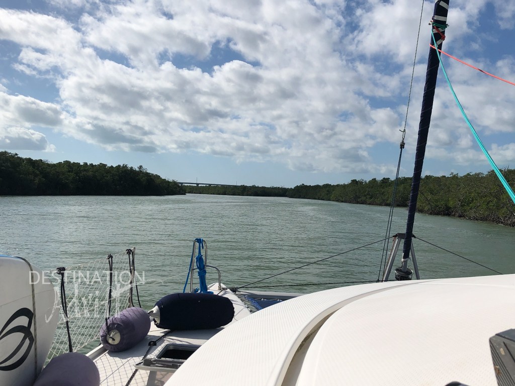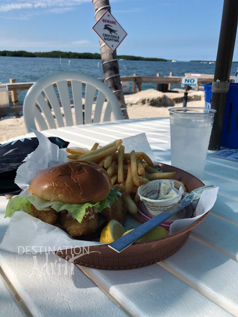 The bay narrowed and we found channel markers to help us navigate our way to the ICW channel. We fired up the engines and passed under the Card Sound bridge to anchor on the west side of the channel. Finally, we were in the Keys! We were told by our boat mentor, Stan, that on that side of the channel, you can dinghy in to an amazing restaurant called “Alabama Jacks”. Boy was he right! For only $30 we got a 2 person seafood sampler that not only fed all three of us, but we had tons of leftovers! One night there and we were off again.