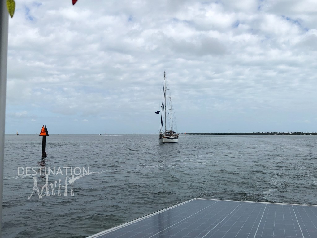 Fri, 12/18/20-Our stop in Biscayne National Park was short, just an overnight at Sands Key. As we headed south the next morning, the cold wind didn’t want to help us too much because it was basically right behind us from the northeast and we were heading south so we decided to gybe quite a bit in order to keep the wind in our sails. A gybe is a change of course by swinging the sail across a following wind, or essentially having the boom swing across the stern of the boat with the wind at your back. Doing this got us all the way across Biscayne Bay with no engine use, which is great because the bay (or actually a lagoon) is about 35 miles long and up to 8 miles wide. It also makes up most of the Biscayne National Park which is 95% water!
