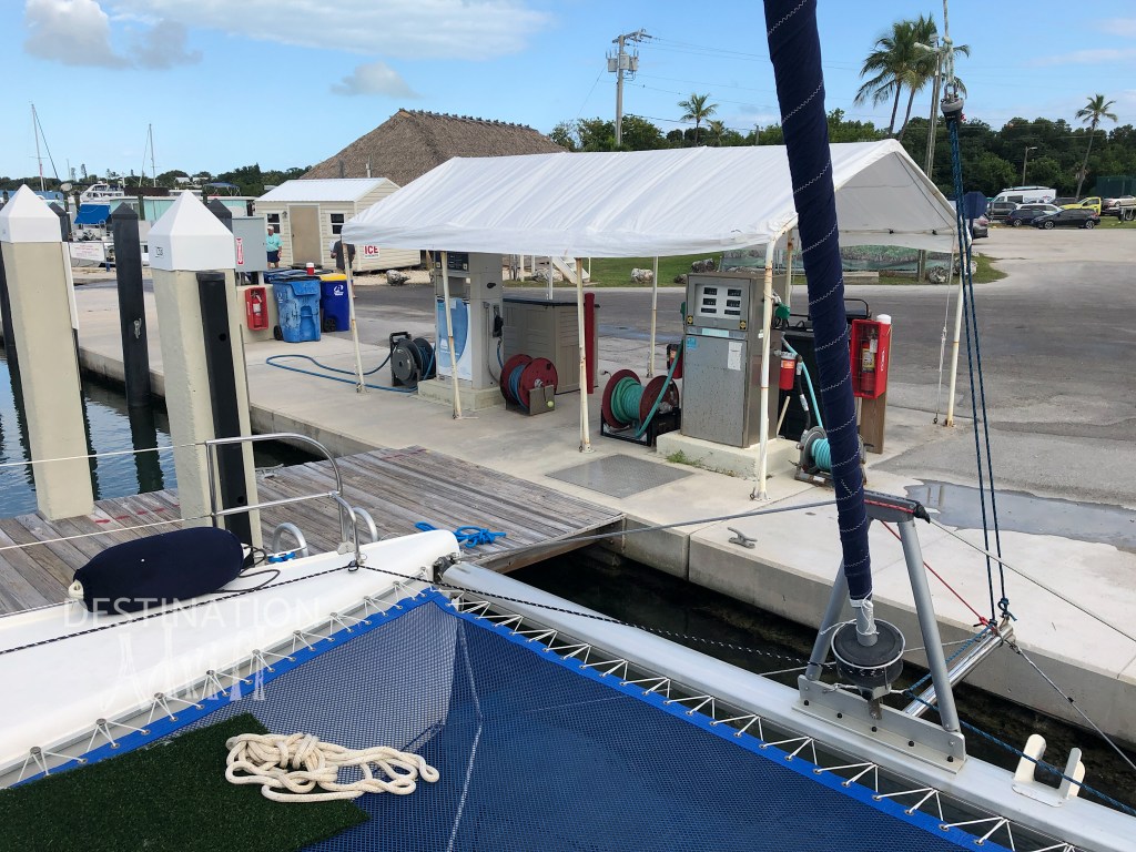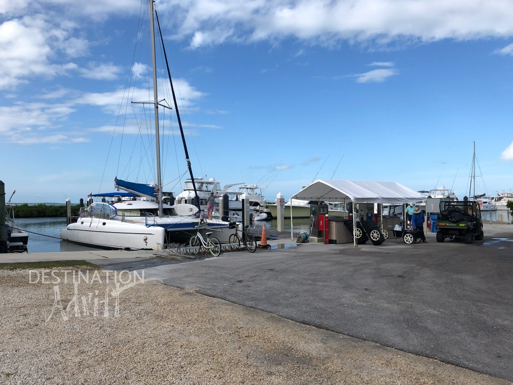 Sun, 12/20-Pulled anchor after breakfast and set our sights on a marina where we could get diesel. We also noticed our mainsheet traveler end cap was broken so we needed to find a place to buy parts. Since we had to pass Gilbert’s back in Key Largo because it was so busy, we were kind of desperate for diesel. We called the Mangrove Marina which assured us we could get into their fuel dock with our draft (3.5ft) so we started our approach to the marina. Depths looked good at 6’ total but we still headed into the channel very cautiously and slow. All of a sudden, the channel got very narrow and shallow as well. Before we knew it, we started pivoting off of the starboard keel. We had run aground. The depth below our keel had decreased to about a foot or less so we knew we wouldn’t be able to fuel up there. Slowly, Steve pivoted all the way out of that area and we were able to escape without any damage or getting stuck. Now what? I frantically looked online for other options and we spotted Plantation Yacht Harbor Marina in Plantation Key. I called ahead of time and they confirmed we could get in there. What a wonderful place this was (read my review here). It had everything we needed and the dockmaster was very kind and helped us pull into the fuel dock. We were able to not only get diesel but also gasoline for the dinghy, a pump-out, ice for the cooler, and dump our trash. OH! I forgot to mention they offered some running around time for Bella. She was very thankful to pee on land again! A quick and easy stop and we were off again to anchor just around the corner in Barley Basin, Islamorada.